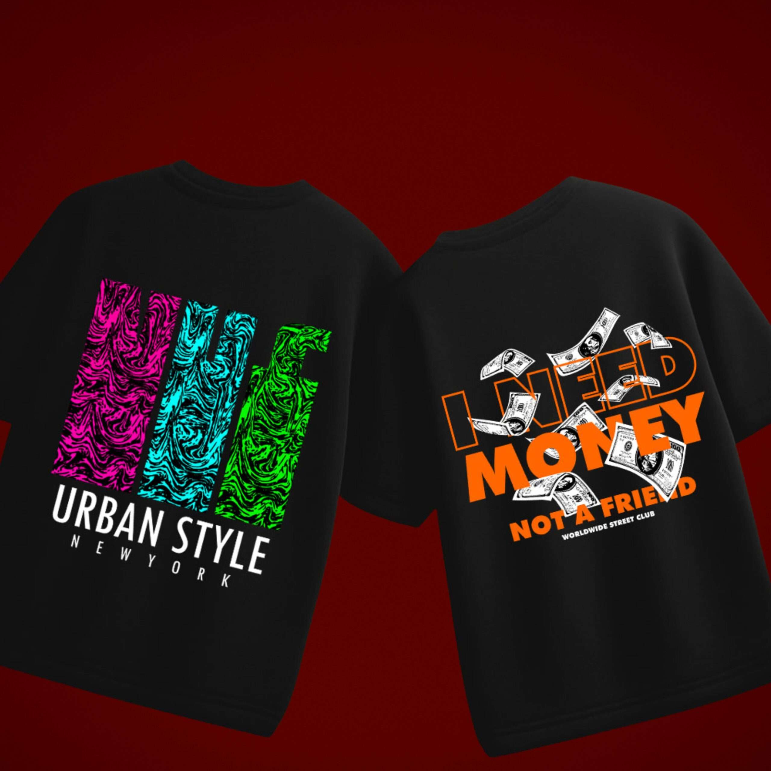 Back Graphic Prints – “Urban Style” and “I Need Money” money print